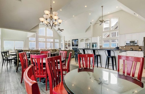 It's time to play! “Boardwalk” offers a vacation spot for your large family gathering with plenty of room and activities for all! The private heated pool is an ample 30 ft by 16 ft, with deck space for seating so you can watch the kids play. Need more space? How about that rooftop deck over the cabana bar? Outfitted with a sink and full-size refrigerator you can store drinks and snacks for the beach or poolside. There's a party going on here all the time! A gazebo by the natural dune offers a shaded respite to enjoy the breeze and some quiet time away from the commotion, or just a cozy evening gathering for the adults.