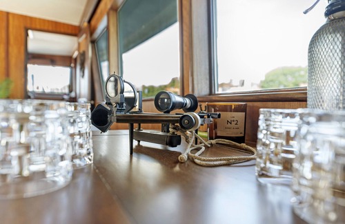 Experience a special holiday on a charming 22-metre-long motor yacht from the 1970s. The boat is moored quietly and securely on the harbour promenade of Eckernförde. Enjoy the proximity to restaurants, cafés, and shops while staying in a stylish and unique setting. All this is just a few hundred metres from the beach. The motor yacht accommodates up to 6 guests in 3 comfortable bedrooms, each with its own bathroom. The extensively renovated boat features a spacious living salon, a cosy dining salon, and a fully equipped galley with induction hob, oven, dishwasher, microwave, fridge-freezer, and espresso machine. Wi-Fi, TV, and a workspace are also available.