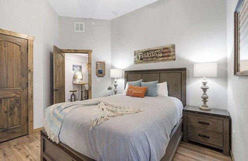 Margaritaville Lake Lodge is a waterfront wonder! This exquisite lakefront lodge can accommodate up to 15 people and is perfect for both kids and adults. The open, spacious great room offers a full kitchen with granite countertops, a dining table for 10 plus counter seating, and a cozy living area with a charming fireplace. Families can enjoy an X-Box gaming console, Roku TV, card games, a ping-pong table, and several items to make your day at the lake even more fun, including fishing poles, and paddle boards. Each of the five bedrooms provides a television. Three bedrooms have king-size beds, and the kiddos will love the bunk rooms (two twin-over-double bunks, one twin-over-twin.) A large, covered balcony offers a tranquil view of the natural beauty of the Ozarks and is perfect for morning coffee or to wind down after a busy day of Branson fun.