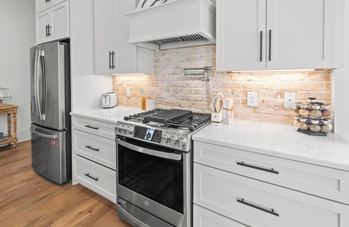 This charming cottage offers 3 bedrooms for your comfort: 1 King bed on first floor, 1 Queen bed, and 2 Full beds, perfect for a family or friends' getaway. With 2.5 baths, including a master bath boasting a large walk-in shower and a luxurious soaking bathtub, relaxation is a guarantee.