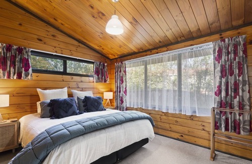 Three bedrooms and one spacious bathroom with a soaking tub, accommodates up to six guests here at this Tūrangi accommodation. A variety of configurations make this an ideal base for a family or group of friends to come together for a adventurous getaway. For those coming for an adventure, a lockable shed for your bikes or fishing equipment will give you extra piece of mind.