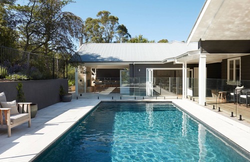 At Bramble Cottage there’s everything to keep the whole gang entertained and enough room for everyone to have their own space. Kids (and kids at heart) will love the nine-metre-long solar heated swimming pool, the air hockey table in the bunk room and the opportunity to shoot some hoops on the basketball court. Teenagers and couples will love the privacy and separation the additional cottage accommodation provides, and parents will love the master bedroom with its palatial private ensuite.