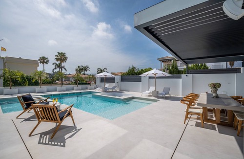 Brand new built designer house in Mijas is located in Fuengirola. Brand new built designer house in Mijas provides accommodation, featuring Parking, Wellness Facilities, Child Friendly, among other amenities. This Villa features Parking, Wellness Facilities, Child Friendly, to make your stay a comfortable one.