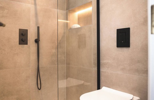 Each bedroom has been designed as a private haven of comfort, with luxury finishes, high-quality linens, and ensuite bathrooms. Bedroom one features two single beds that can be zip-linked to form a Super King with an ensuite shower. Bedroom two also offers two single beds that can be zip-linked to form a Super King with an ensuite shower. Bedroom three has a four-poster king-size bed with an ensuite shower, while bedroom four combines a four-poster king-size bed with a pull-out double bed and an ensuite shower. Bedroom five includes two single beds that can be zip-linked to form a Super King and a pull-out double bed with an ensuite shower. Bedroom six features a four-poster king-size bed and a pull-out double bed with an ensuite shower. Bedroom seven offers a Super King bed with a luxurious copper feature bath in the bedroom and an ensuite shower. Bedroom eight has two single beds that can be zip-linked to form a Super King with a pull-out double bed, an ensuite shower, and a luxury bath with an integrated TV. All bedrooms include high-quality furnishings, thoughtful lighting, and air conditioning to ensure comfort for every guest. Several rooms offer four-poster beds or flexible sleeping arrangements, making the space ideal for families, friends, or corporate groups.