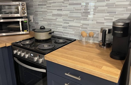 Unwind in this serene and stylish space. Relax in the comfort of a brand new, beautiful and cozy suite with a full kitchen and private entrance, and enjoy the tranquility of your own large and gorgeous private backyard. Take a break from work or sightseeing and watch your favorite shows on the 45” TV. Indulge your culinary skills and cook your favorite meals inside the full kitchen with all the amenities or savor a glass of wine in your private garden and enjoy the beautiful gazebo with grape vine. There is even a small dedicated work area with rolling chair for those who cannot get away from work or prefer to work from home.