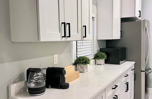 - Coffee/Tea station stocked with Nespresso pods and a selection of teas