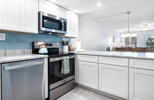 This ground level unit is brand new and completely remodeled since Ian. A beautifully appointed island rental in the charming 18 unit Gulf-side community of Breakers West.