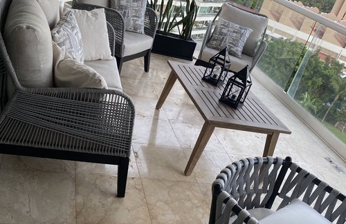 Shangri-la condominiums are located in the Marina area and next to the Marriott Hotel. The condo is on the 9th floors, of building 3. It is walking distance to many restaurants, coffee shops, local stores and only 5 minutes to the international airport. It has guarded entry with security 24/7.An amazing swimming pool, jacuzzi, restaurant and a bar areas for great food, margaritas, or just to have an amazing time. The ocean front gym has state of the art equipment, air conditioned and the best sunset views while you workout. Two tennis courts with lights for night play at no additional cost.