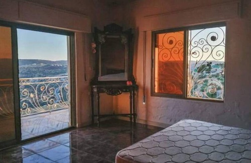 The charming guesthouse located on the top of a hill, supplied with an outdoor pool and offers two master rooms and the third bedroom with a guest bath, a kitchen, dining & sitting room as well a spacious guest room. Space opens onto a large terrace with outside dining and a playing area for kids with exceptional views and the tranquility of true country living only 50 minutes from Amman. Our guests enjoy country walks and fresh air. Nearby, Jerash Roman Ruins ( 15 min)