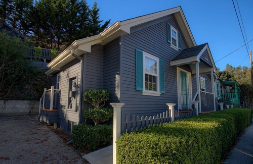 Sophisticated and refined, this charming gem of a property is perfectly located in the heart of downtown Cambria. Ideal for a couple with a small furry friend, this home is tasteful, modern, and bright, with just the right amount of coziness. The shops and restaurants in our eclectic artist's community are within walking distance from the property, yet it's location is still tucked away enough for peaceful nights ideal for stargazing or a romantic glass of wine by the fireplace. There's a King size bed in the master with attached full bath,open living/dining space with a fully stocked kitchen that has top of the line stainless steel appliances. There's an amazing outdoor area above the property that's simply unequaled for an outdoor dinner, brunch or lunchtime picnic area. Must see this beautifully designed home to appreciate! Wifi, cable TV, gas BBQ, washer/dryer, pet-friendly TOT#6003722