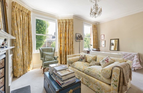 Charming, spacious one bedroom, 1st floor Victorian flat with high ceilings. Decorated with antiques in period style, with original sash windows. A home from home!