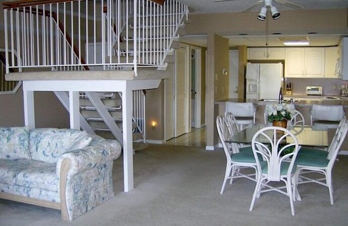 Fully equipped kitchen, very large family room with plenty of seating and a queen size pullout couch. Large flat panel TV. Large dining table that can seat six. Deck off the family room overlooking the southend of the island with a slight ocean view. Sleeps 6.