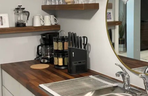 Enjoy a stylish experience at this centrally-located Kansas City basement apartment. Bright mid modern 1 bedroom basement apartment with fully equipped kitchenette. We are available to answer any questions and address any needs during your stay via airbnb app. Don't hesitate to message us. Close to beautiful Brookside Neighborhood (7min) quick boutique shopping, groceries, local coffee shops, several restaurants. A short drive to the country club plaza shopping and restaurants and the Power & Light District. While being only 10 minutes from the heart of downtown KC, 15 minutes from KC Sporting Complexes, Arrowheard & Kauffman Stadium and 25 minutes from the Airport. All IHOPKC facilities within 10 miles. Outdoor Rec Beautiful Longview Lake with boat rentals&fishing Ride KC Street Car streetcar system in downtown KC is free to ride throughout downtown ranging from Union Station to River City Market with several stops along the way including the Power & Light District.