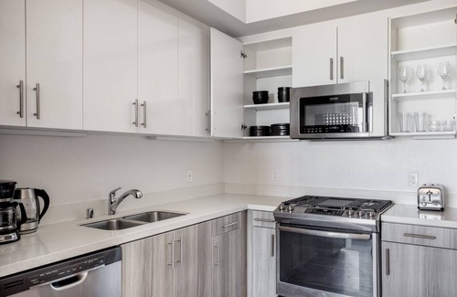 Gorgeous furniture, fully-equipped kitchen, smart TV, and a premium wireless speaker are just a few of the amenities you’ll find inside this one bedroom apartment. Ideally located in Los Angeles, you’ll find a lot to love outside as well. When you’re ready to relax, you’ll be happy to discover every Blueground bedroom comes with superior quality mattresses, luxury linens, and cozy towels. We handle everything so you can simply show up and start living. This apartment also offers in-apartment laundry.
