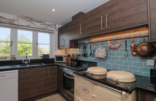 Brook Cottage consists of a kitchen/diner with electric oven and hob, AGA, microwave, fridge/freezer, dishwasher, a sitting area with TV and open fire, and a second sitting room with TV and woodburning stove. The bedrooms consist of a super-king-size with en-suite shower room, a super-king-size, two doubles with en-suite shower room, and a double, serviced by a bathroom. Outside there is a non-enclosed garden with lawn, terrace, undercover patio with barbecue and pizza oven, table tennis, orchard, and furniture, plus off-road parking. Within 2.8 miles, you will find a shop, within 2.5 miles, a pub, and please note this is a smoke-free and pet-free property. WiFi, fuel, power, bed linen, and towels included in the rent. Highchair and travel cot available. This property has a good housekeeping bond of GBP 300. There is a 4 night minimum for bookings starting on a Monday or a Wednesday. Please Note: In summer bookings from a Friday or Saturday only and for a 7 nights minimum