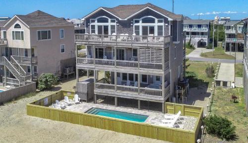 Brownbeard's 609 offers accommodations in Waves, 1.8 miles from Salvo Beach. The vacation home has access to a restaurant. The vacation home has an outdoor pool and a hot tub. Providing access to a balcony, the air-conditioned vacation home consists of 5 bedrooms. Featuring a terrace with sea views, this vacation home also comes with a satellite flat-screen TV, a well-equipped kitchen with a dishwasher, an oven, and a microwave, as well as 6 bathrooms with a hot tub and free toiletries. The property has an outdoor dining area. Guests at the vacation home will be able to enjoy activities in and around Waves, like cycling.