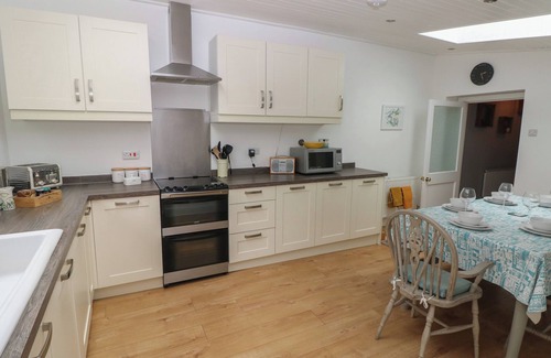 Amenities: Gas central heating. Electric double oven, electric hob, microwave, fridge/freezer, washing machine, dishwasher, kettle, toaster. Smart TV, DAB radio, books, selection of games, snorkeling gear, WiFi. Fuel and power inc. in rent. Bed linen and towels inc. in rent. Highchair, travel cot, and stairgate available upon request. Road-side parking at a first-come, first-served basis, public carpark nearby. Enclosed rear garden with lawn, patio, furniture, and barbecue. One well-behaved dog welcome. Sorry, no smoking. Shop and pub 0.1 miles. Note: Check-in from 4pm, check-out by 10am. Note: There are steps up to the enclosed rear garden, please take care