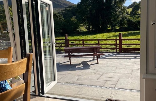Luxurious, spacious 4 bedroom bungalow, tucked in amongst the magnificent mountain views from all windows. All mod cons available. Oil central heating. 2 en-suite king size bedrooms plus two other twin bedrooms.Large dining kitchen and warm cosy sitting room with log burning stove. Splendid new sun room with spectacular views from all windows. A real indulgent luxury, turn off all lights and star gaze whilst enjoying the delightful log burner heat.