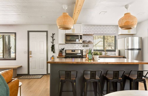 Escape to the tranquil embrace of our "Bungalow in the Pines"🌲 a haven of chic comfort nestled amidst whispering pines. Forget the city's chaos as you step into this single-level sanctuary, where nature's symphony replaces the urban buzz. This thoughtfully designed retreat, boasting two cozy bedrooms and a bathroom, is made for intimate couple's escapes and family moments. You'll find yourself perfectly in the heart of Big Bear Lake, 1.4 miles from The Village and a short stroll to the lake.