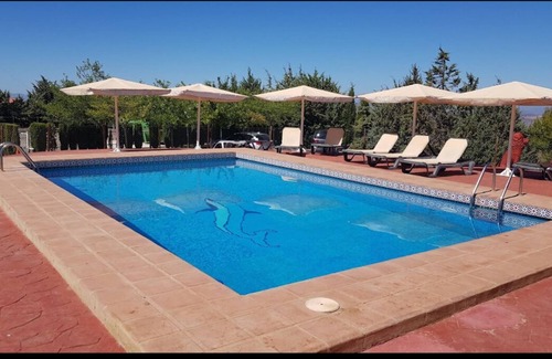 Bungalow, pool and free W-LAN is located in Casabermeja. Bungalow, pool and free W-LAN provides accommodation, featuring Parking, Pool, TV, among other amenities. This House features Parking, Pool, TV, to make your stay a comfortable one.
