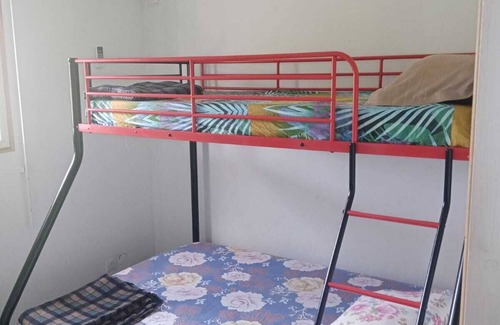 2 air-conditioned bedrooms, two double beds and a single bed.