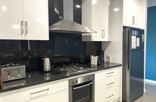PROPERTY DETAILS: 4 bedrooms - queen, queen, 2 x bunks (4 singles), queen. Sleeps 10; Quilts, blankets and pillows provided – BYO sheets, pillowcases, towels, bathmats & tea-towels; OR optional linen hire $170 available through Country Getaways office; optional linen service fee $80 for beds to be made up. Portacot (guests need to bring all bedding to use). Ensuite bathroom adjoining master queen bedroom with walk-in shower, vanity & toilet; Main bathroom with bath, walk-in shower & vanity; Separate toilet. Ducted reverse cycle air-conditioning throughout; Ceiling fans in all bedrooms. Large television with USB & HDMI ports in main lounge room; WiFi for guests; Board games; Books. 2nd television with USB & HDMI ports in 2nd lounge room; Highchair. Fully equipped kitchen with gas stove, electric oven, microwave, coffee machine (guests need to bring Nespresso-compatible pods), dishwasher, and medium fridge/freezer. Top load washing machine; Iron; Ironing board; Clothesline. Shaded outdoor entertaining area; Hooded gas barbecue; Drinks fridge/freezer in courtyard area. Fenced yard with 6-foot fence; Lawned area. Off-street driveway parking for 2 cars; No guest access to shed. 10 minutes walk to beach. Sorry, pets not permitted.