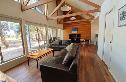 Burrabogie is located in the south-east area of waterfront retreat with lots of shady trees surrounding it. It’s nice and quiet in both inside and outside the lodge and it’s a perfect place for you and your family to have a relaxing retreat. Kangaroos and birds love the shady area under the huge trees surrounding the lodge. You can expect to see lots of wildlife outside the lodge especially on a sunny afternoon where animals come up close to the lodge to get fed.