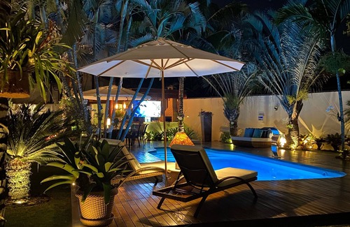 Buzios House is located 200 meters from Manguinhos Beach. The beach has lush natural beauty, warm water, surrounded by sea turtles. Great for water sports such as stand up and sailing, jogging, walking and suitable for kids to play by the sea. Buzios House has 4 bedrooms, 1 suite with super king bed, armchair and a smart TV led 55 ”, air conditioning, ceiling fan, large closet with safe. Bedroom 2 with super king bed, 42 ”led tv, air conditioning, ceiling fan, large closet with safe. Bedroom 3 with 4 single beds, 42 ”led TV, air conditioning, ceiling fan, large closet with safe. Bedroom 4, with queen bed, 55 ”TV, chest of drawers, ceiling fan and Roman curtain. All rooms have Sky Cable TV with full package of telecine and HBO movies, entertainments and Premiere Football. The house also has a great room and a gourmet air-conditioned balcony with barbecue, wood oven, 55 'LED Smart TV with SKY and Netflix and sofas that have an armchair to relax the feet and enjoy the view. It has an exceptional outdoor space with pool, mattresses, chaises, ombrellones, tables with chairs to have a delicious breakfast amidst the fresh watered coconut trees that are complimentary to those who reserve the property. The house has all the premium 5-star infrastructure, so you don't have to carry anything but personal bags, of course. All people and all peoples of the world will be welcomed and treated at Buzios House.