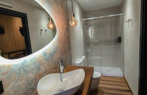 Un espazo diáfono (salón – cocina – cama) con acceso directo al jacuzzi exterior cubierto y baño independiente.