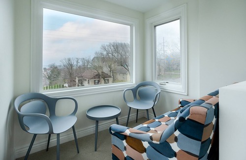 --- Head back upstairs and stop for a quick surprise kid’s nook, cleverly hidden under the stairs. Designed by the owner’s kids themselves- who doesn’t love a good fort! Continue up the stairs to the 2nd level. This level features an additional queen bedroom with its own private deck overlooking Washington Park & Lake Michigan. The final bedroom is a dream come true. The massive bunk room features 4 full-size built-in beds & 2 queen beds; all with their own reading light, charging niche, and under bed drawers. Two full bathrooms with designer finishes round out this level.