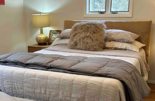 Secluded cabin with 3 bedrooms, perfect for skiers who want a cozy place after a day at the slopes. Designed with the skier in mind, there's wood-burning fireplace, free coffee, a mudroom area with places to put your boots, coats, skis, etc and there are breathtaking forest views.
