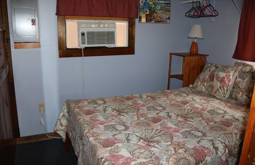 The cabin has a Dorm room size fridge, 2 burner induction cooktop, microwave, toaster, coffee maker, a Full-Size bed. Dining table and chairs, Cable TV and Wi-Fi. There is also a screened-in Porch with chairs you can sit and watch parts of the bay. The property has a fire pit with wood. Cabin #2 has a gas grill. This location is a 5-minute walk to the town beach and state boat launch. Lots of Hiking, Boating, kayaking water skiing, and other outdoor activities. The cabin has ceiling fans and window AC unit. A small electric fireplace takes the chill off. We are 25 minutes to the NH Pavillion concert facility. The White Mountains are an hour away as well as the ocean.