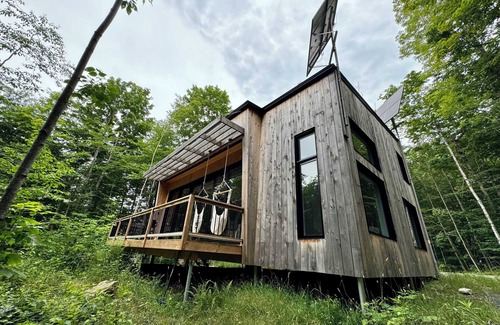 This cabin, on the backside of Mont-Orford Park, is situated on the immense 1000-acre Vertendre forest playground. This protected, private territory offers 2 lakes and a mountain where you can enjoy a wide range of outdoor activities right on the site. A perfect balance between ecology, innovation, and comfort.