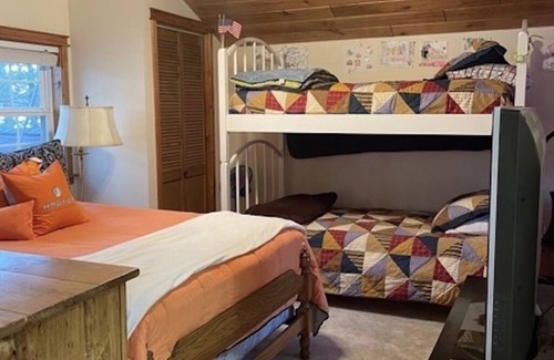 Upstairs Loft area: 1 King sized trundle bed, twin bunk beds, and 1 queen sized bed.