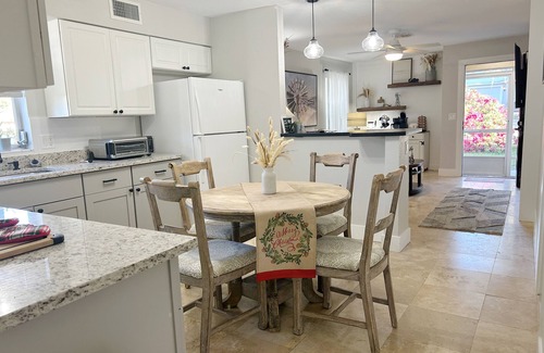 Freshly Remodeled waterfront 2 Bedroom, 2 Bath Duplex. The Farmhouse decorated living room has a custom Shiplap wall with a 55" TV and an electric fireplace. Make sure you utilize the Keurig Coffee maker and make a fresh cup or a whole pot from the coffee bar. The kitchen offers a table with seating for 4 and a bar with seating for 2. It is fully equipped with all of your needs for baking and cooking. The Master bedroom offers a king size bed and a 50" TV. The Master bathroom has a walk-in shower with a small step to enter. The Second Bedroom has a queen size bed, black out curtains and a 42" TV. The second Bathroom has a tub/shower combo. There is a screened in back porch to sit on and enjoy your cup of coffee in the morning and the canal view. Enjoy your evenings taking a stroll around the neighborhood on the bicycles or taking a cruise down to the river on the kayak and paddleboard. Make sure to cast a line with the fishing poles and tackle provided. If you need live bait, there is a bait shop a short drive away. Cap off the night with a glass of wine and stories around the fire pit. For the boaters, bring your boat and enjoy the Caloosahatchee River. The South Franklin lock boat ramp is a 5-minute drive from the Caloosahatchee Hideaway. There is a landing with cleats to tie off your boat. For larger families the unit next door is also available. We can accommodate 10 guests with both units.