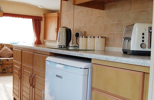 This lovely modern caravan enjoys a convenient location on the site, but well away from the club and any traffic. It has a large open plan living room, including dining area and a lovely kitchen arrangement. It has its own decked terrace with bistro table and chairs to soak up the sun.