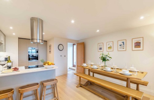 Bathroom: Bath With Shower Over, Toilet. Air source heat pump central heating, electricity, bed linen, towels and Wi-Fi included. Travel cot and highchair. Welcome pack. . Front garden with garden furniture. Bike store. Electric vehicle charging point (£50 per week). Private parking for 2 cars (no vans, campervans or caravans). No smoking.. With breath-taking views from the arch windows and fabulous attention to detail throughout, this truly is a wonderful countryside retreat for families, friends, or couples to enjoy some relaxation together, spending time within an area of tranquillity but close enough to all amenities. Haybale Barn is set on a small new development of converted farm buildings and has plenty of cosy seating, high open beamed ceilings, and a large dining table to gather after cooking in the well-equipped kitchen. Downstairs you will find two double bedrooms with outstanding views, one of which has an en-suite walk-in shower room. Head upstairs where there are a further two well-presented bedrooms, comprising of a king size bedroom with another en-suite walk-in shower room, and a triple bedroom, each promising a delightful space to wake up to each morning. Upstairs is the main family bathroom with a modern bath and overhead rain shower. Head outside to the garden with outstanding uninterrupted views over the Cheviot Hills, a truly idyllic sun trap. Enjoy some al fresco dining whilst watching the sunset – a view you will never forget!