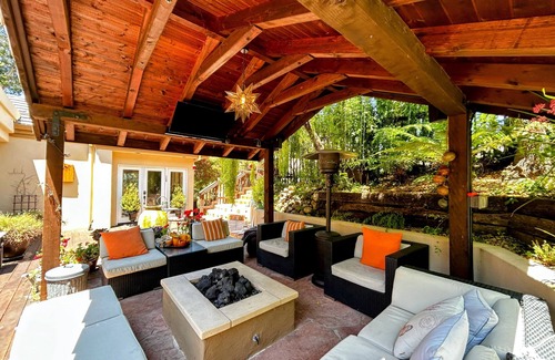 The well-appointed kitchen is equipped with everything you need to prepare gourmet meals, while the outdoor kitchen with a gas grill and Santa Maria style BBQ provides endless possibilities for alfresco dining. Relax in the cabana after a day of exploring, or gather around the crackling fire pit under the starlit sky.