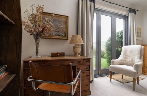 Comfortable and stylish with a large selection of books and artwork collected over many years, the main living room leads onto the dining room, both with spectacular views. Relax on one of three large sofas in front of the open fire or the huge circular pouffe in the bay window. Such a relaxing spot you could easily spend the day here! The living room opens onto the elevated patio outside and steps lead you to the lower terrace and gardens.