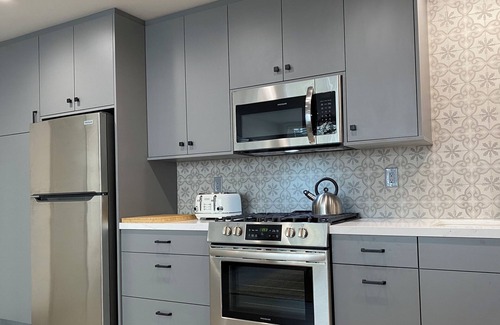 This beautiful one bedroom condo has been completely renovated - just completed in April 2023. Everything is brand new, with a spacious open floor plan, new furnishings and appliances and tile floors. It has a king size bed, queen sofa bed, a modern faux fireplace, and a 65” smart TV. In the kitchen, a range, microwave, dishwasher, etc. The bathroom boasts a walk-in shower with lovely stone floor and separate vanity. The La Cabana complex offers a pool and is just across the street from Carpinteria’s “World’s Safest Beach.” Walk to the Salt Marsh Nature Preserve, Tomol playground, and downtown shops and restaurants.