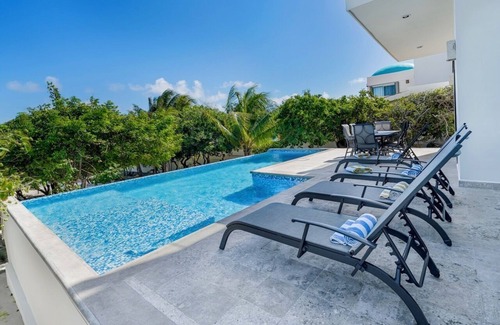 Breathtaking views of the Caribbean Sea await you at Casa Camacho in Isla Mujeres, Mexico! Come enjoy your vacation in this private 3-Bed, 3.5-Bath modern home with tons of natural light and unobstructed views of the Sea. Enjoy the Caribbean breeze from the infinity pool, or relax on the 2000 sq. ft. rooftop deck with a private Jacuzzi and 360-degree views of the island and mainland Cancun.