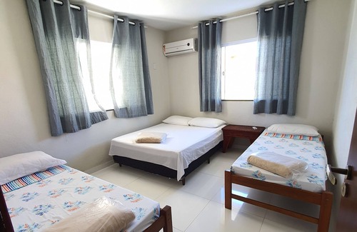 Nestled in Camaçari, this 2-bedroom, 1-bathroom vacation home brings it all within your reach. Fans of nature and the outdoors will love being 12 minutes by foot from Arembepe Beach and 5 minutes by car from Tamar Project. If you'd like to explore the area, you can make the 21-minute drive to Guarajuba Beach or the 21-minute drive to Barra do Jacuipe Beach.