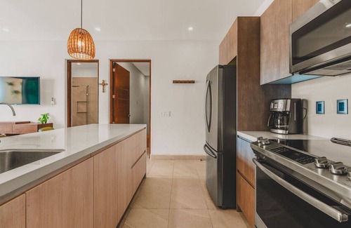 • Step into the heart of Casa De Vigil and swim with the turtles! Our mural is a constant reminder - you’re on vacation! Here, a luxurious couch beckons you to relax and unwind while enjoying your favorite shows or movies on the large smart TV, but it will be hard to pull your eyes from our beach scene framed by the balcony doors!