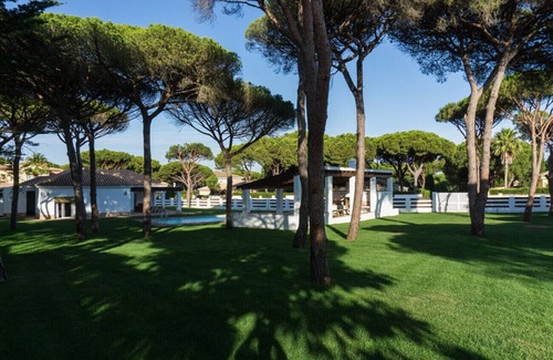 As the long shadows of the umbrella pines fall across the vast stretch of lawn at Casa del Jardín you will be facing the first dilemma of your holiday: should you have your drinks on the protected terrace overlooking the pool... or in the chillout area from where you can keep an eye on the rather splendid barbecue... and still enjoy the view of the pool? But there will probably be few other such difficult decisions; this property has been purpose-refurbished to encourage families and friends to relax. The garden, pool, and outdoor kitchen/dining/chillout area are all generous to say the least, the sitting room is stylish and fresh, the kitchen brand new and geared to comfortable cooking, and with the beach just 500 metres away, the sound of the breaking rollers will help lull you into a holiday slumber.
