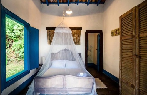 Charming little house in a caiçara style in the middle of the Atlantic Forest in Borrifos on a coastline in the south of Ilhabela. Accommodations for two people in double bed, suite, guest toilet, full kitchen with four burner stove, refrigerator, electric oven, toaster, coffee maker, maid service, Sky TV, wifi. Decorated with artwork. Facing the sea provides complete integration with nature. Ideal place to contemplate, meditate, observe birds, the sea. Coastal excellent for fishing and diving. Accommodations for up to 3 people.