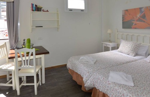 Our studios on the top floor of our Casa El Patio. Simply decorated and renovated, they offer a private bathroom with shower and hairdryer. In the main living space there are 2 twin beds, flat-screen TV, WiFi, closet, table set and a small functional kitchen. Direct access to the small terrace with the barbecue. Shared washing machine available. Cleaning fee not included in price: 20€/stay.