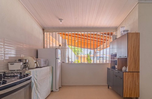 Com 3 quartos, a casa é ideal para famílias ou grupos de amigos que buscam um lugar arejado, amplo e confortável. A sala de estar é o coração da casa, onde você pode relaxar após um dia de sol, enquanto a cozinha moderna e equipada convida para preparar deliciosas refeições. O destaque vai para a varanda com área gourmet, perfeita para um churrasco ou momentos de convivência.