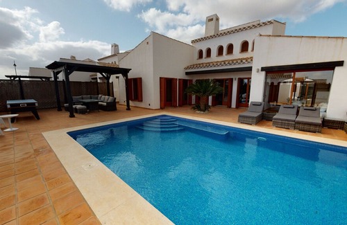 Stunning 4 bed villa on El Valle Golf Resort, heated private pool, outside dining, sunbeds, pool table, IPTV, Sky, facilities, on-site bar restaurant, supermarket, tennis court, paddle court, 18 hole golf course. The private pool has been extended and therefore has a brand new pool heater set within the refurbed terrace area complete with shower. The terrace area and villa are completely private and secure. Also, both bathrooms have been fully refurbished. El Valle Golf Resort Located at the Southeast corner of the Iberian Peninsula in the Murcia region of Spain, bordering the province of Albacete in the North, the province of Alicante in the East, the provinces of Granada, Albacete and Almería in the West, and the Mediterranean in the Southeast. The Murcia region lies at the centre of the Spanish Mediterranean coastal arch and features the Mar Manor Europe’s biggest salt-water lagoon, and is probably Spain’s least talked about region. The Summers are hot and the winters are mild and rain rarely last more than a day at a time The location and landscape gives this gated resort a unique experience of Spanish mountain village life. Situated close to the Sierra de Carrascoy mountains regional park, yet with easy access to make the most of the surrounding area to explore Murcia city, the beaches, shops, bars and restaurants and to make the most of the surrounding area. El Valle was built to be one of the best resorts in the area with only 369 Villas and 319 Apartments being built, which makes a charming feel to the resort with the peace and tranquility that can be found here. El Valle has an excellent range of facilities like; tennis and padel courts, an 18 hole Jack Nicklaus designed golf course, an international supermarket, a restaurant and clubhouse, 247 security, modern gym, and a thriving community which organises weekly golf competitions, bike rides and many other activities throughout the year. Please note pool heating will be charged at €10 per night, payable on arrival to the keyholder.