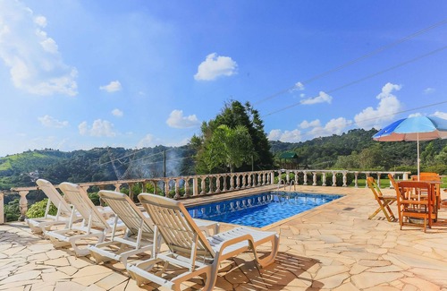 Descubra o refúgio perfeito em Mairiporã, com piscina, churrasqueira, fogão e forno a lenha, mesa de bilhar e campo de futebol. São 4 quartos, sendo 2 suítes, acomodando até 11 hóspedes com muito conforto e uma vista incrível. Ideal para momentos inesquecíveis com amigos e família.