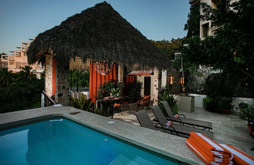 Private Pool home on the hill above the Romantic Zone in Puerto Vallarta Mexico. Enjoy the charm of real Puerto Vallarta in this classic home. Updated in 2022 but still retains the charm of Mexico. 3 Bedroom and 3 Baths. Rooftop Pool and Palapa